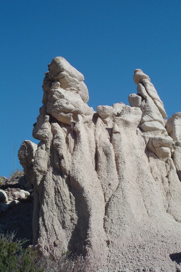 El Camino Del Rio presented the most varying scenery of this trip—vast expanses of now-familiar desert, huge terra-cotta stone mesas towering above, white volcanic ash mountains and sculptures called “hoodoos.”