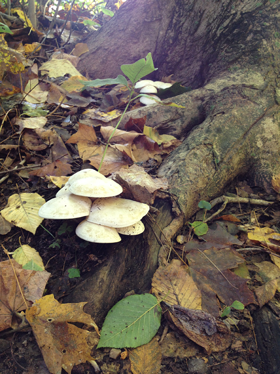 I saw an elf bent over, studying the bark of a tree just up the path. “What are you looking at?” I asked, feeling curiouser and curiouser. “Mushrooms,” he told me, “these.” Then he bowed and plucked a bouquet from the log at my feet. Edible, he explained with a smile, so I asked “What are you making?” and he replied “Oyster mushrooms with a sherry cream sauce.” Mouths watering, we talked a bit about wild woods and food fare before we parted ways. Darn, I keep thinking, I forgot to drop my shoe. How will he ever find me?