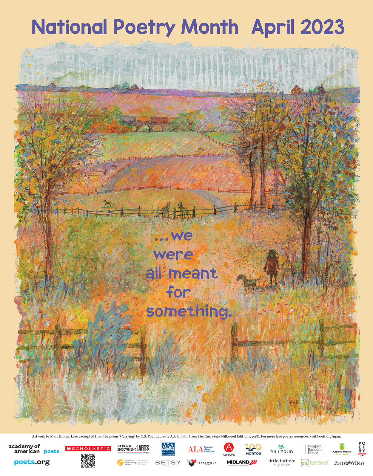 “Launched by the Academy of American Poets in April 1996, National Poetry Month is a special occasion that celebrates poets’ integral role in our culture and that poetry matters. Over the years, it has become the largest literary celebration in the world, with tens of millions of readers, students, K–12 teachers, librarians, booksellers, literary events curators, publishers, families, and—of course—poets, marking poetry’s important place in our lives.”
