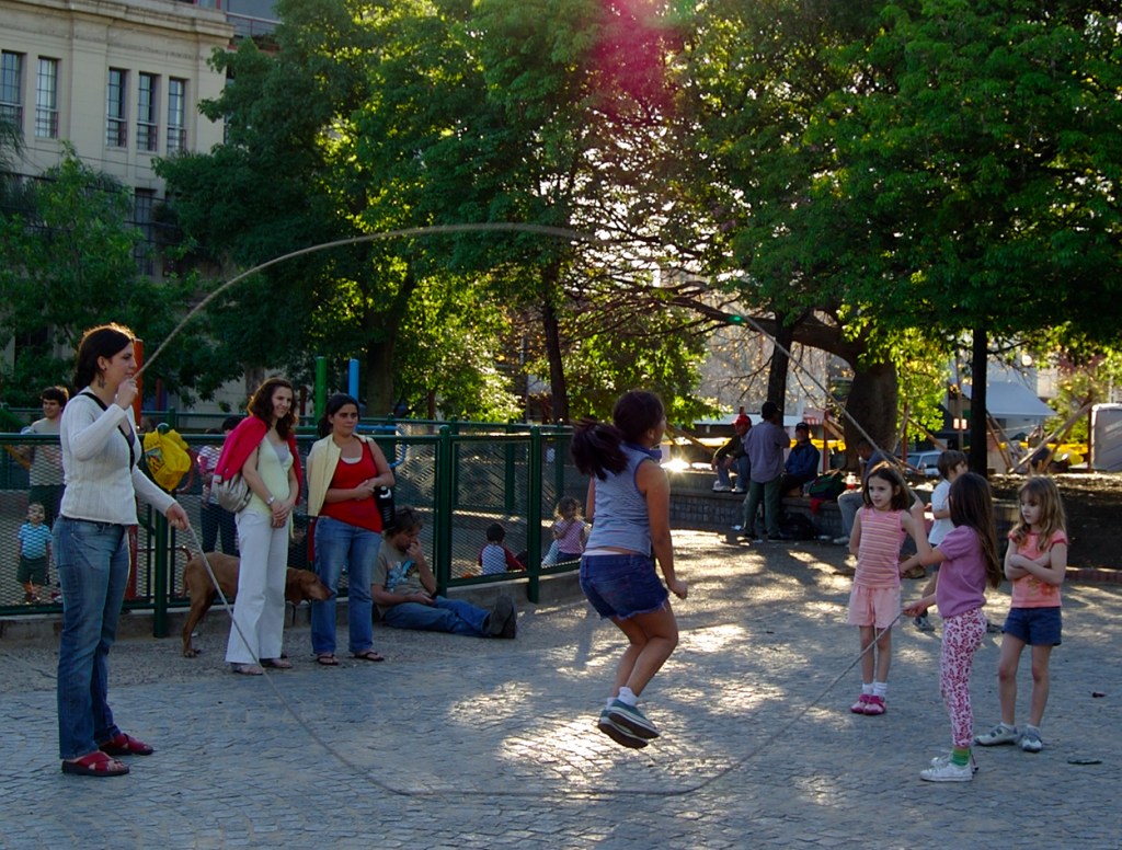 Also a great song and videa by Malcolm McClaren .https://www.youtube.com/results?search_query=double+dutch+malcolm+mclaren Probably before your time.