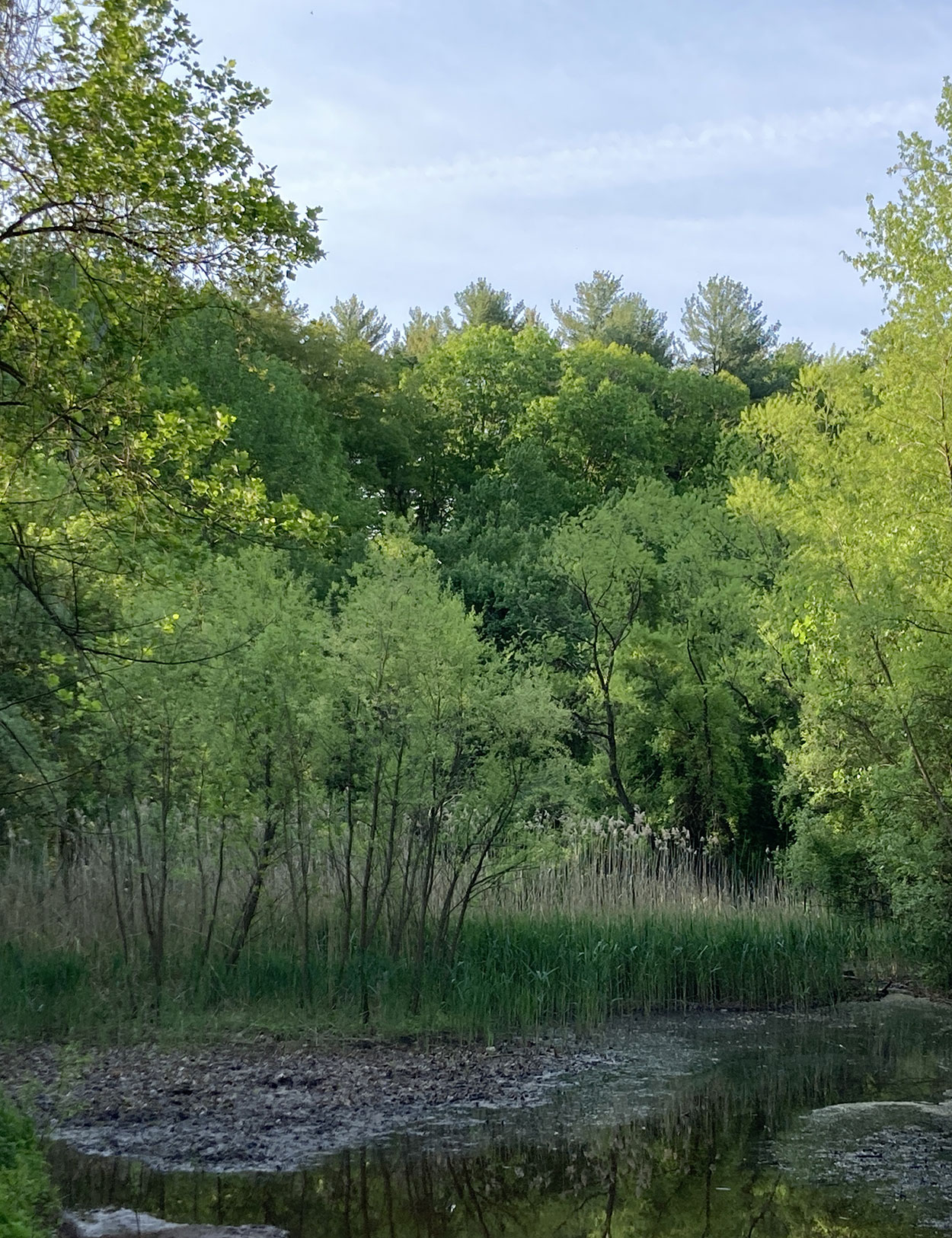 by a small pond in the woods