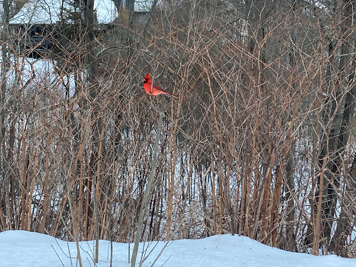 *As if on cue, I saw my cardinal friend in the backyard just this morning, the first time in a month!