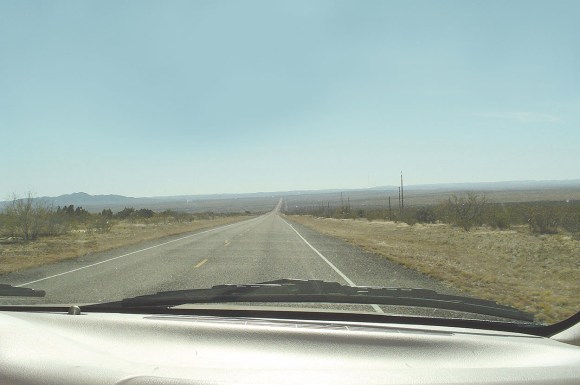 As we drove Route 385, we followed old electrical poles—short well-worn wooden stakes, in no particular shape or conformity. Some still wore glass transformers, now perched in sad and telltale disemploy.